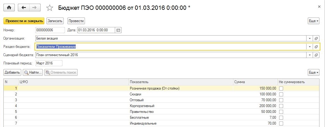Фактические значения показателей система получает из бухгалтерских проводок.
