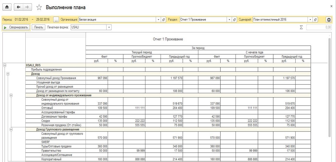 - встраивание системы отчетов USALI в существующую систему ведения учета (только для продуктов 1С).
